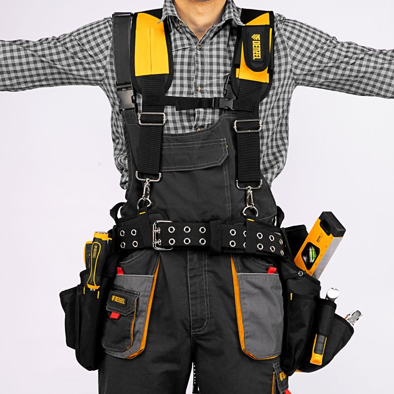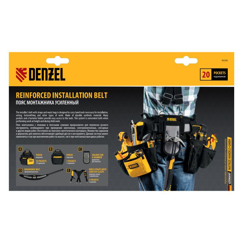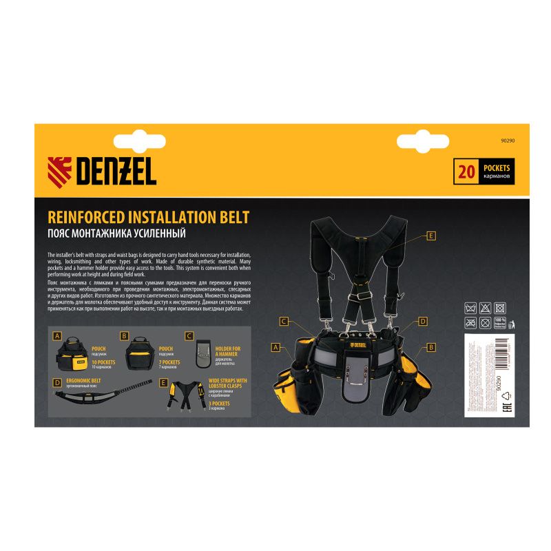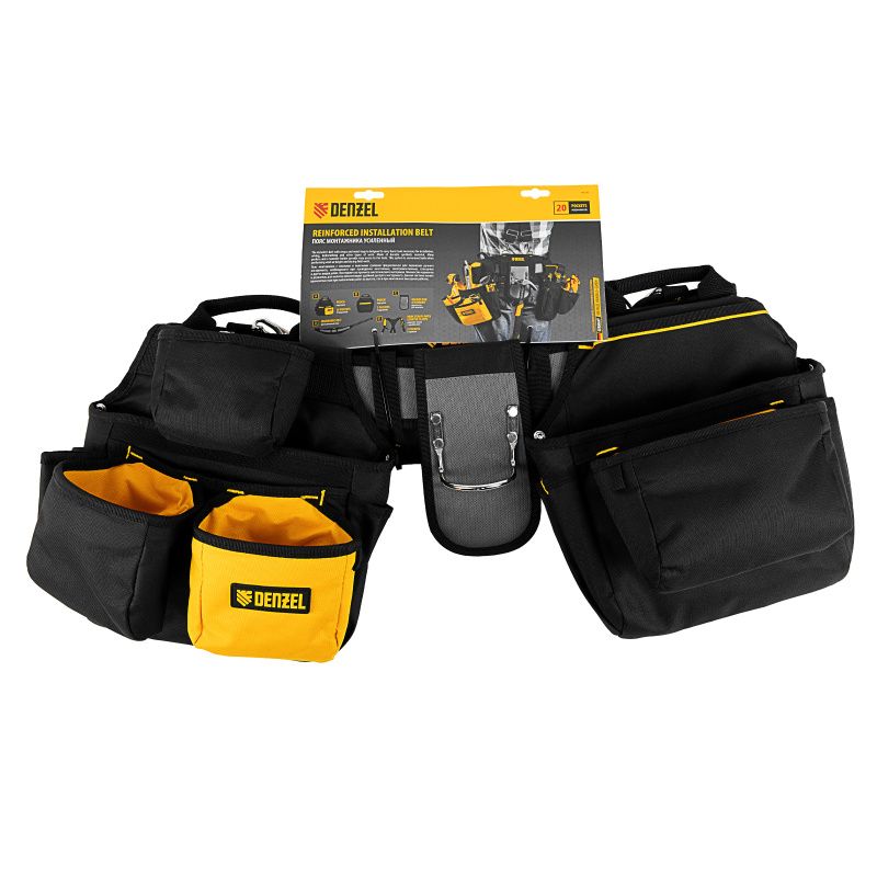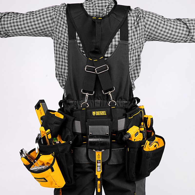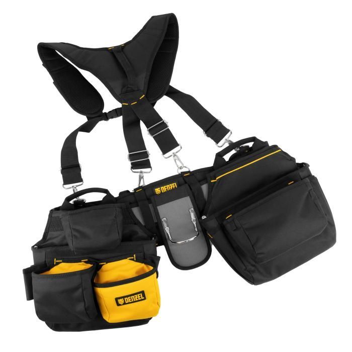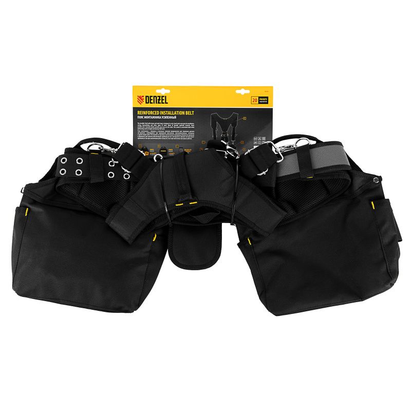 Пояс монтажника усиленный, с лямками, сумки поясные, держатель для молотка Denzel, 90290