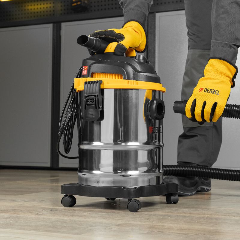 Пылесос Denzel SVC15 имеет большой объем пылесборника, что позволяет продолжительное время работать без перерывов на его очистку. Кроме того, пылесос оснащен функцией автоматического отключения при заполнении пылесборника, что предотвращает перегрев и повреждение двигателя.