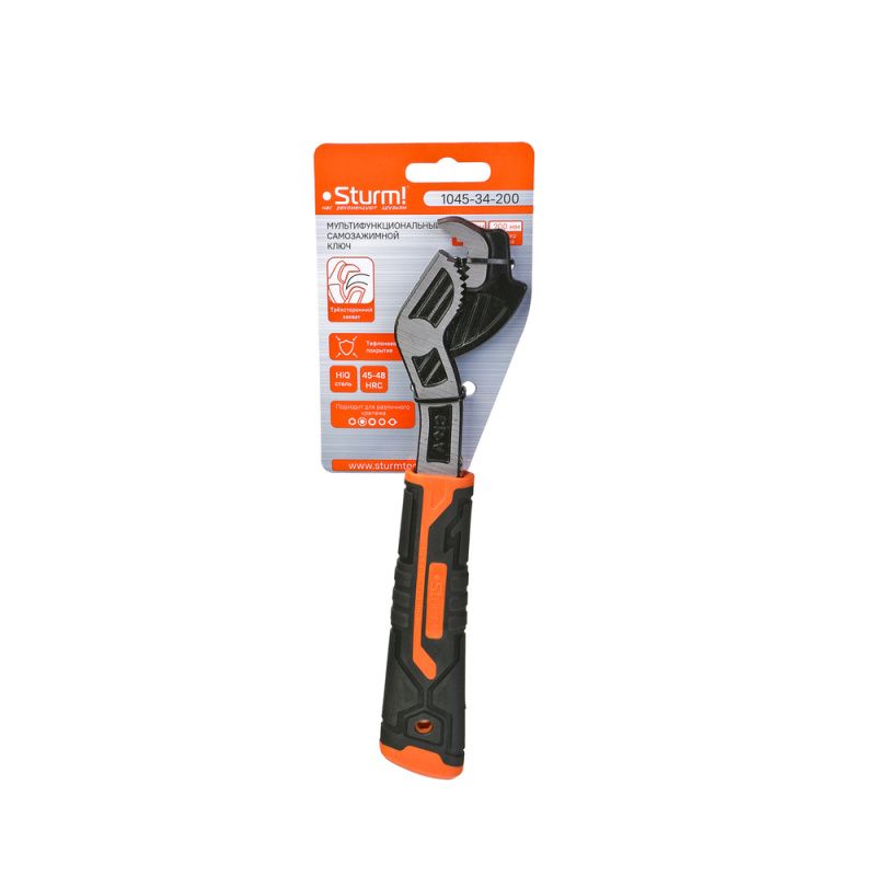 Ключ 200 мм универсальный самозажимной, 40Cr сталь, тефлон, Sturm, 1045-34-200