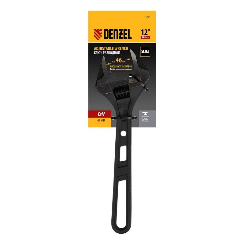 Ключ разводной Denzel 300 мм, CrV, 15750