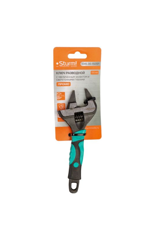 Разводной ключ с супер тонкими губками, 150 мм,зев34мм, фосфатированный, Sturm, 1045-30-150SP