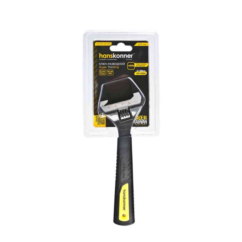 Разводной ключ с супер тонкими губками, 200 мм, зев 38мм, фосфатированный, hanskonner, HK1045-30-200