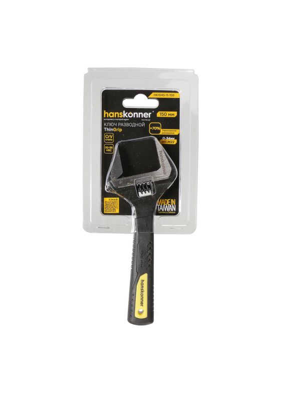 Разводной ключ с тонкими губками, 150 мм, зев 34мм, фосфатированный, hanskonner, HK1045-11-150