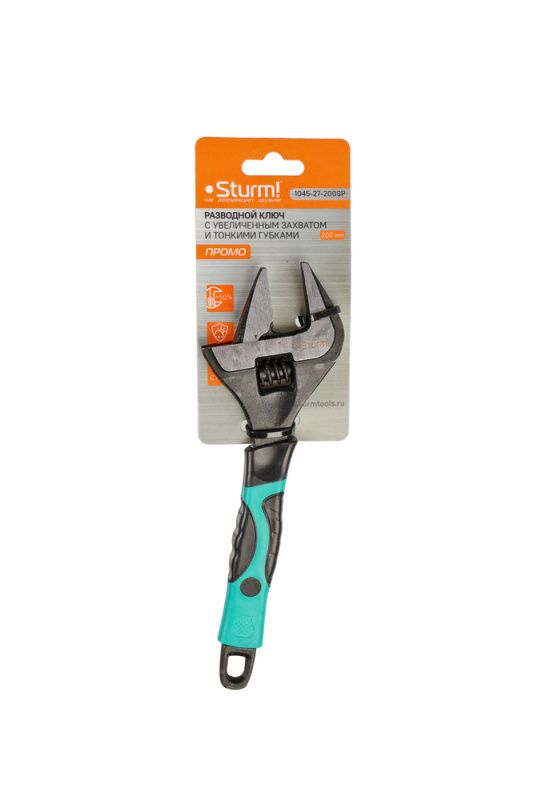 Разводной ключ с тонкими губками, 200 мм, зев 39мм, фосфатированный, Sturm, 1045-27-200SP