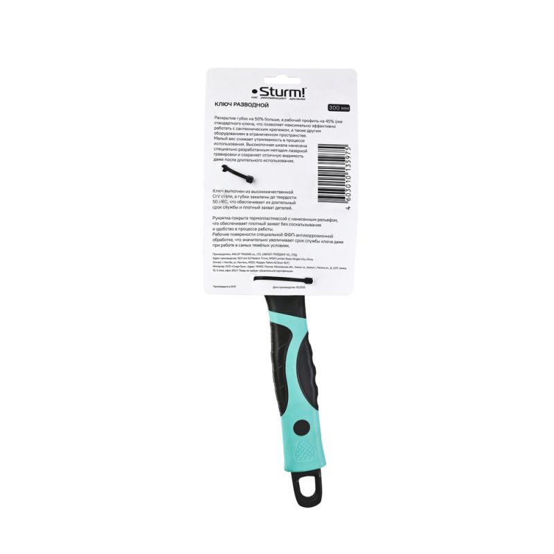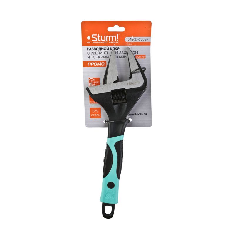 Разводной ключ с тонкими губками, 300 мм, зев 60мм, фосфатированный, Sturm, 1045-27-300SP