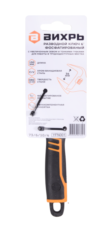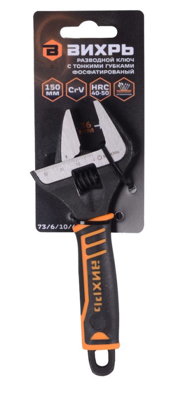 Разводной ключ с тонкими губками, фосфатированный, 150 мм, Вихрь, 73/6/10/4