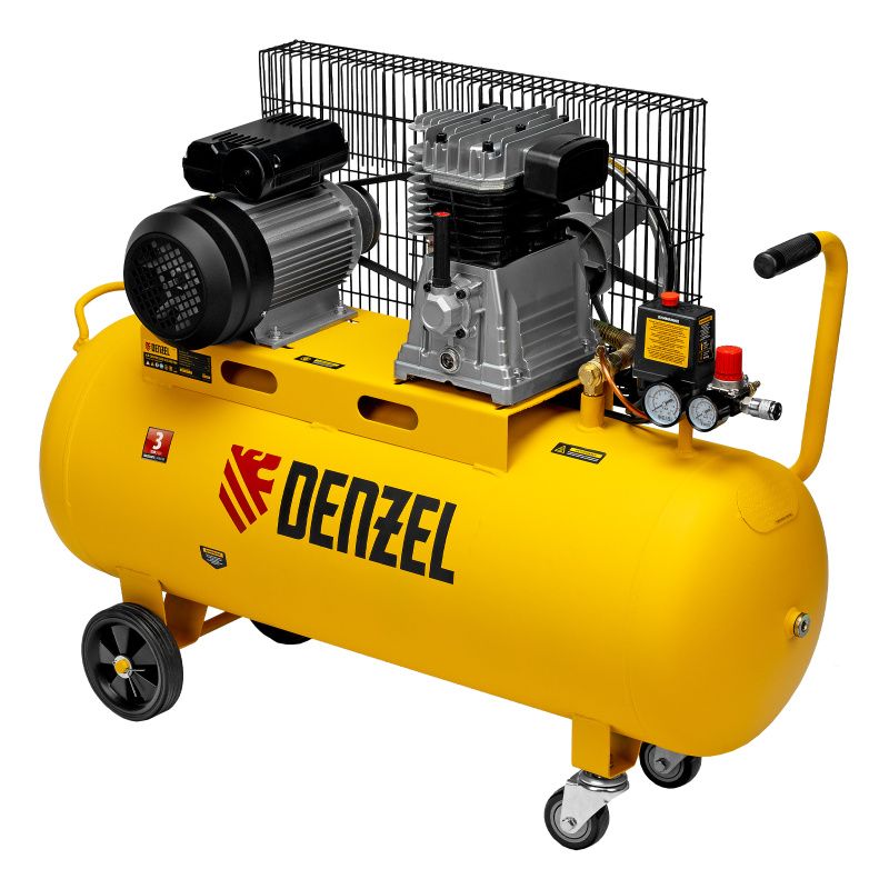 Ременной компрессор Denzel BCI2300/100 оснащен большим ресивером объемом 100 литров, что позволяет накачивать большое количество воздуха и обеспечивает его стабильное давление. Благодаря этому, вы сможете работать длительное время без перерывов на ожидание накачки воздуха.