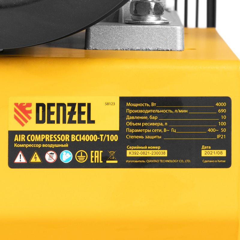 Компрессор воздушный, ременный привод Denzel BCI4000-T/100, 58123
