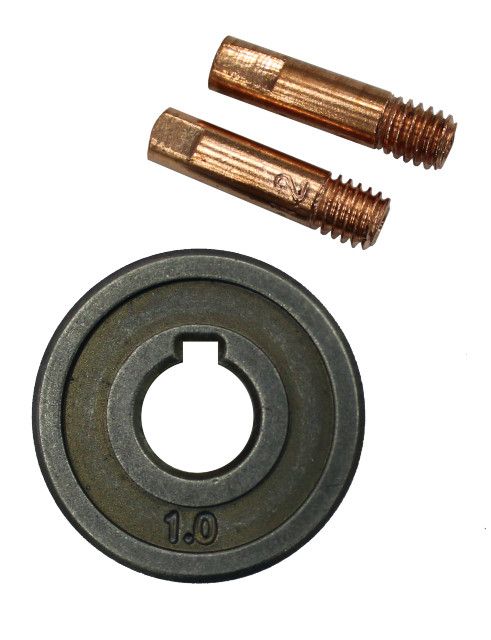 Ролик и наконечник - это расходные материалы для полуавтоматов.Ролик предназначен для протяжки определенного диаметра проволоки.