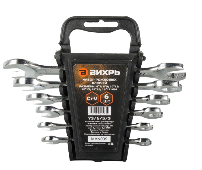 Набор рожковых ключей 6 шт. 6 - 17 Вихрь, 73/6/5/3