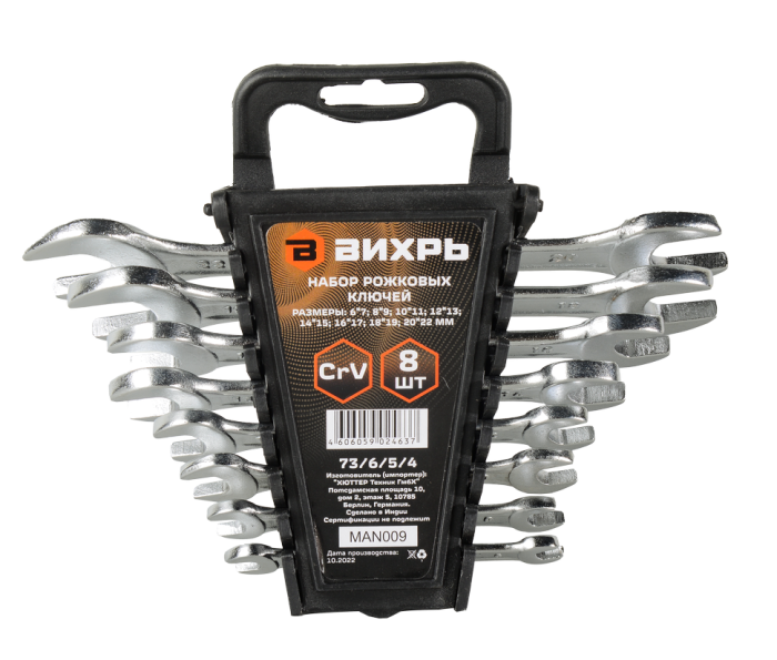Набор рожковых ключей 8 шт. 6 - 22 Вихрь, 73/6/5/4