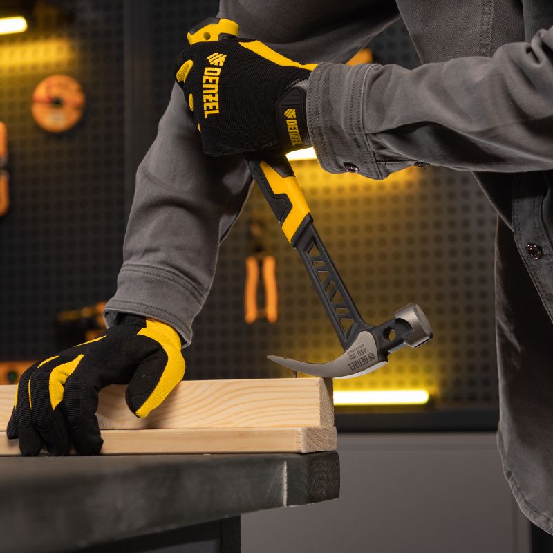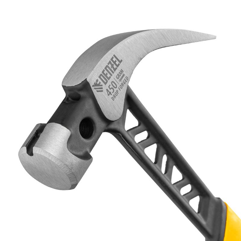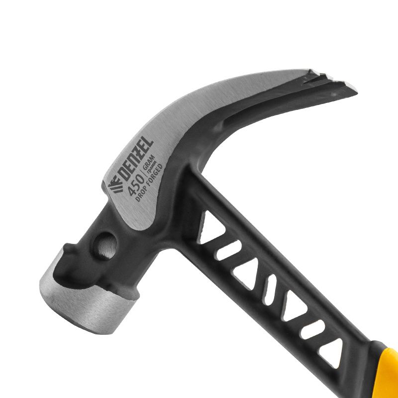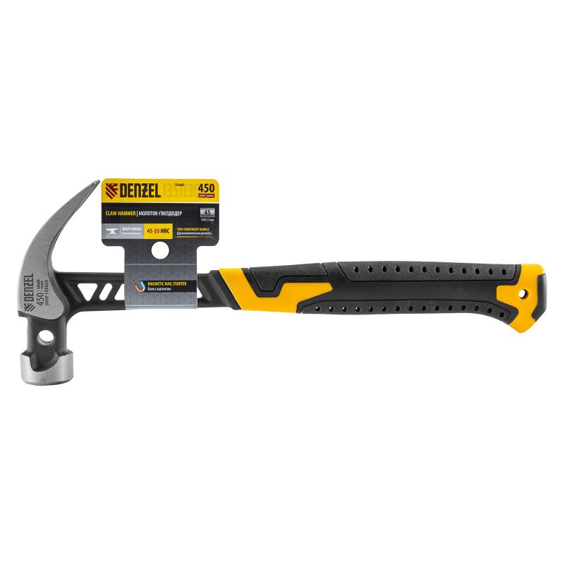 Молоток-гвоздодер 450 г, цельнокованый,боек с магнитом, двухкомп. обрезин. рук-ка Denzel, 10466