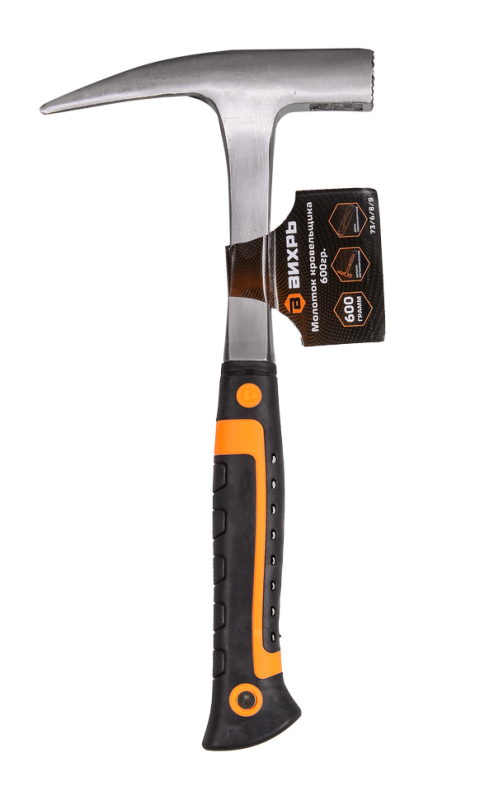Молоток кровельщика Вихрь 600гр., цельнометаллический, двухкомпонентная рукоятка, 73/6/8/9