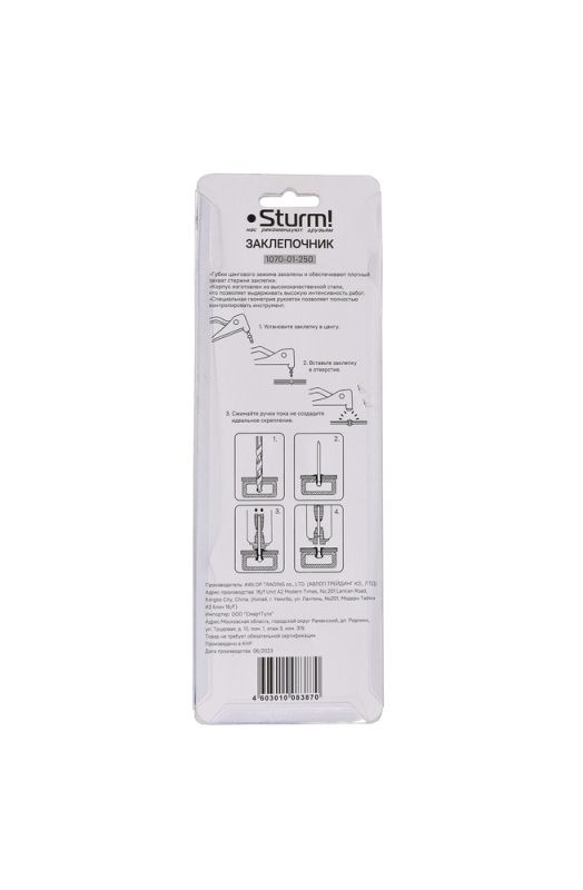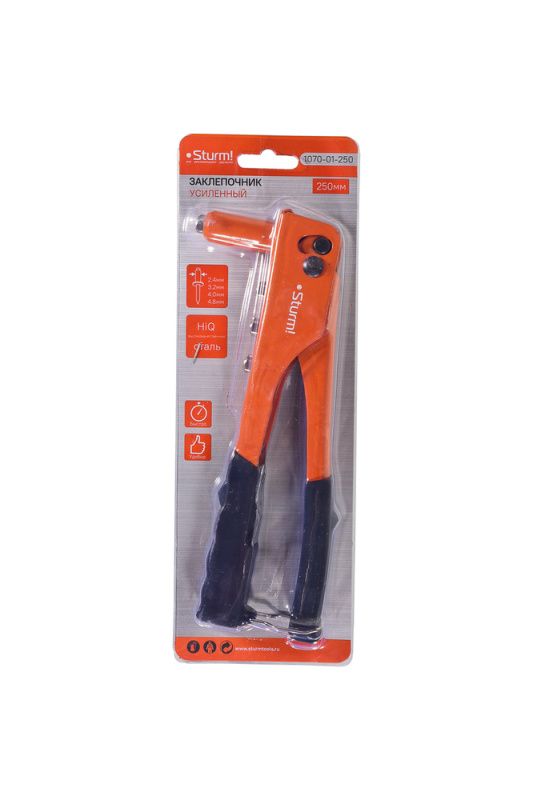 | Особенности | Специальная конструкция цангового зажима предотвращает перекос стержня и обеспечивает надёжную фиксацию заклепок, Выверенные механизмы вытяжки заклепок обеспечивают минимум прилагаемых усилий для максимальной эффективности работы, Выверенные механизмы вытяжки заклепок обеспечивают минимум прилагаемых усилий при максимальной эффективности работы. Специальная конструкция цангового зажима предотвращает перекос стержня и обеспечивает надёжную фиксацию заклепок. |
