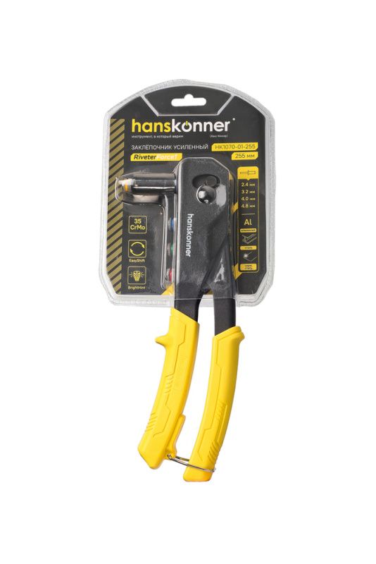 Заклепочник 255мм, заклепки 2,4/3,2/4,0/4,8мм, Hanskonner, HK1070-01-255