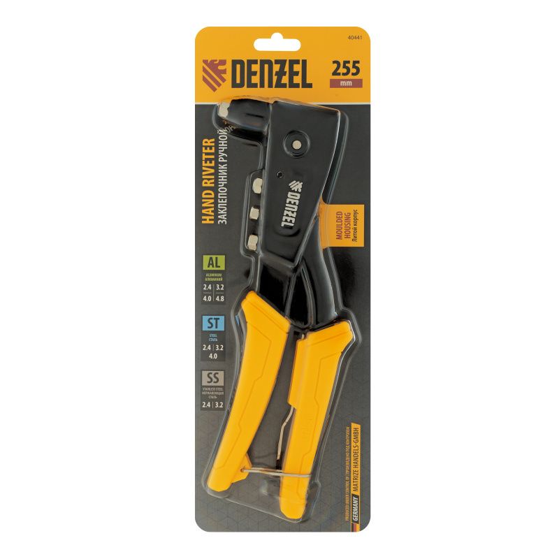 Заклепочник ручной, 255 мм, литой, усиленный, заклепки 2,4-3,2-4,0-4,8 мм Denzel, 40441