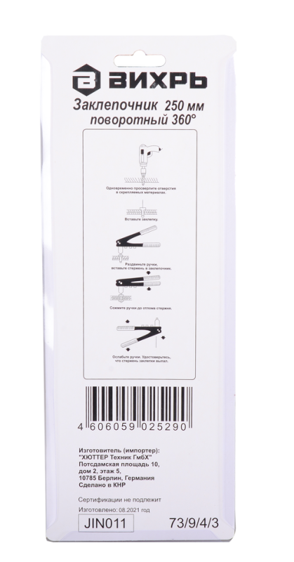 Заклепочник ВИХРЬ 250 мм поворотный 360, 73/9/4/3