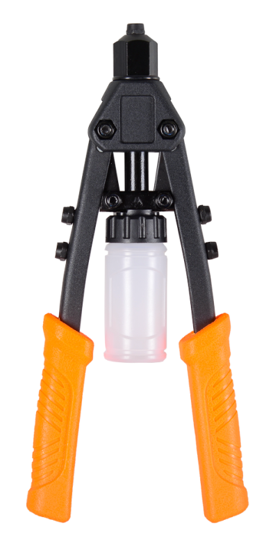 Зажимной (цанговый) механизм снабжен регулятором хода, что увеличивает усилие и позволяет с легкостью работать с заклепками из стали и нержавеющей стали;
