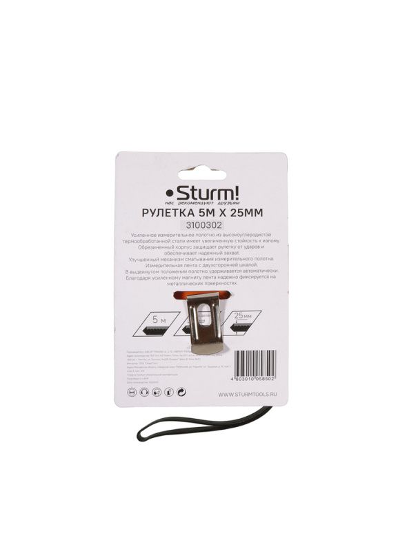 | Дополнительные характеристики | Ударопрочный обрезиненный пластик защищен от ударов и обеспечивает надежный захват, усиленное белое измерительное полотно с повышенной стойкостью к излому, крупные цифры, улучшенный механизм сматывания, двухсторонняя шкала, двухсторонний зацеп, усиленный магнит |