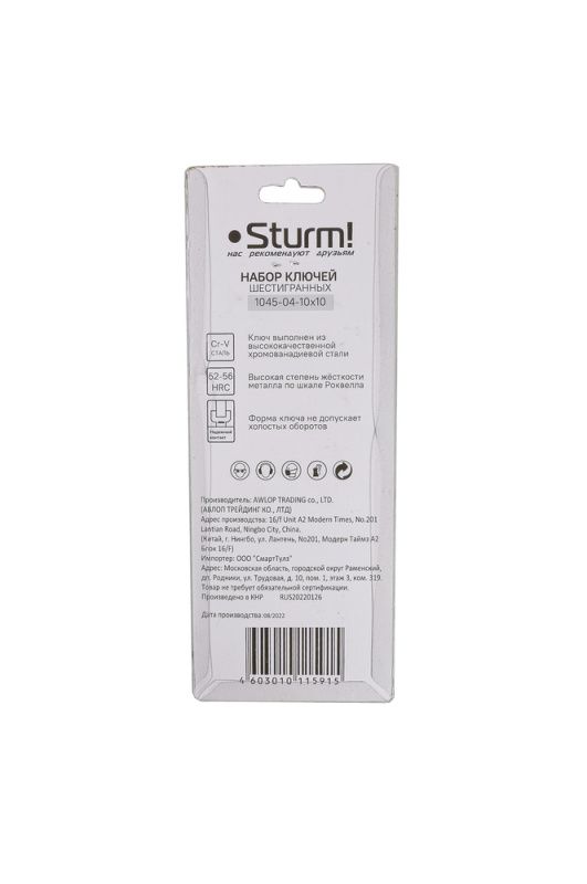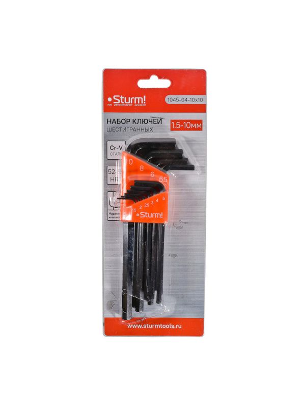 Набор шестигранных ключей 1, 5-10 мм, CrV, 10 шт, оксидированное покрытие Sturm, 1045-04-10x10