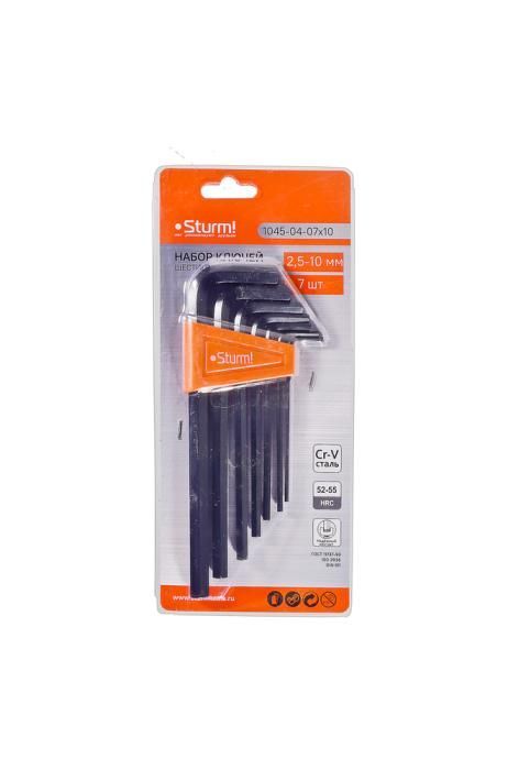 Набор шестигранных ключей 2, 5-10 мм, CrV, 7шт, оксидированное покрытие Sturm, 1045-04-07x10