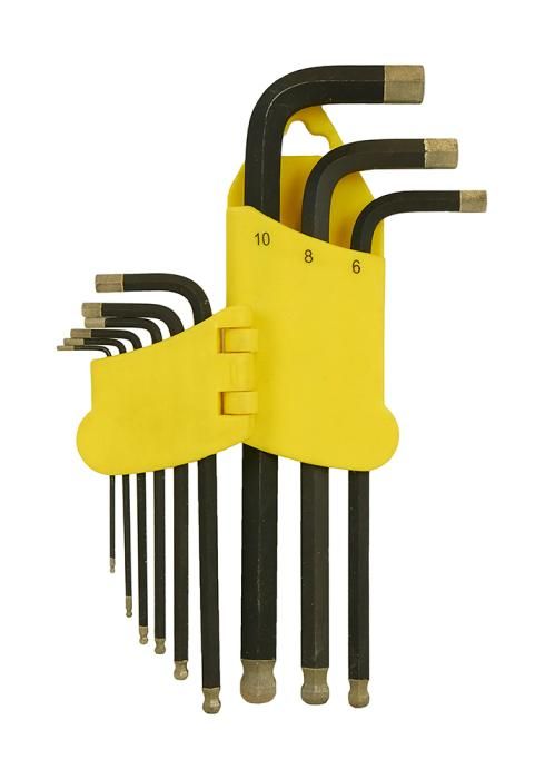 Набор шестигранных ключей с шаром, 1, 5-10 мм, 9 шт, S2, длинные, Hanskonner, HK1045-04-9-L