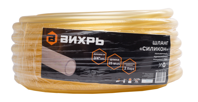 Шланг поливочный Силикон однослойный 3/4 дюймов, 25м (прозрачный) Вихрь, 73/7/2/29
