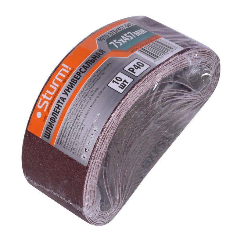 Шлифлента, 75x457мм, Р40, 10 шт, Sturm, 9010-B75x457-040