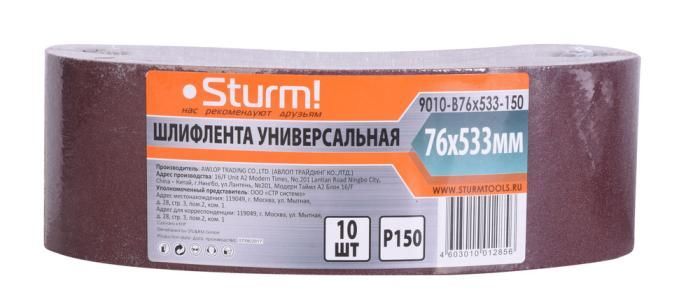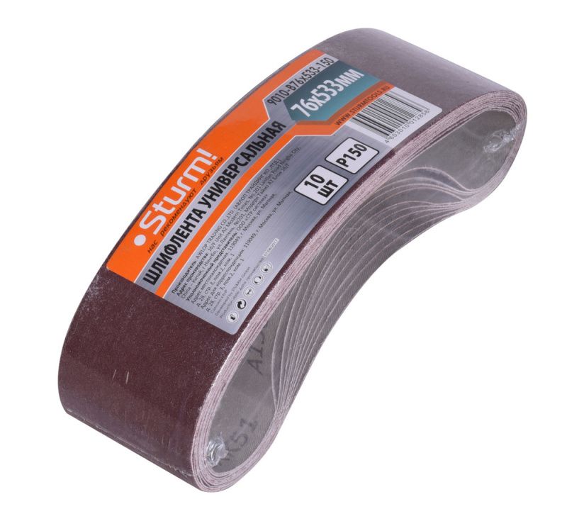 Шлифлента, 76x533мм, Р150, 10 шт, Sturm, 9010-B76x533-150