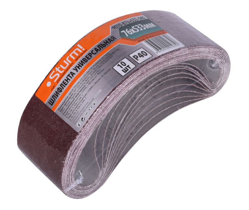 Шлифлента, 76x533мм, Р40, 10 шт, Sturm, 9010-B76x533-040