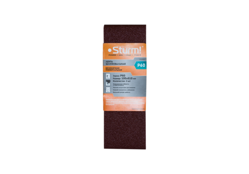 Шлифлента универсальная, 100х610мм, P60, 3 шт, для ЛШМ, х/б ткань, Sturm, 5210302