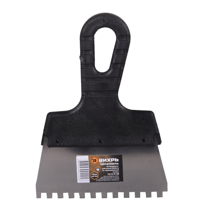 Шпатель ВИХРЬ 6х6 мм, зубчатый, нержавейка, пластик, 150мм, 73/3/2/25