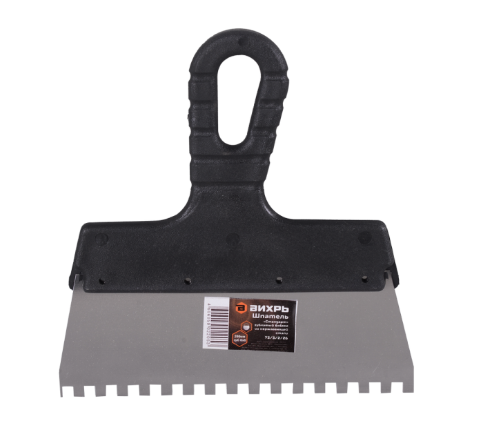 Шпатель ВИХРЬ 6х6 мм, зубчатый, нержавейка, пластик, 200мм, 73/3/2/26