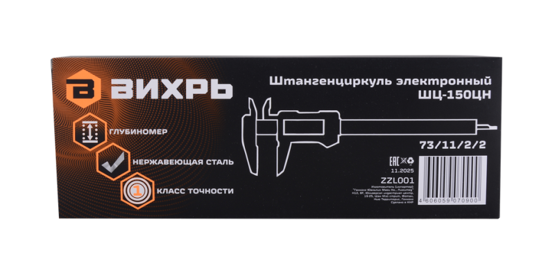 Штангенциркуль электронный ШЦ-150ЦН с глубиномером Вихрь, 73/11/2/2