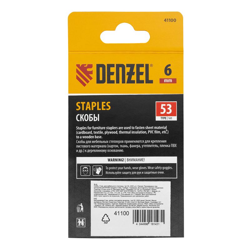 Скобы, 6 мм, для мебельного степлера, тип 53, 2000 шт. Denzel, 41100
