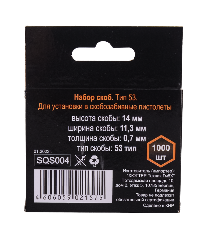 | Модель | Скобы для мебельного степлера (14мм, тип 53) |