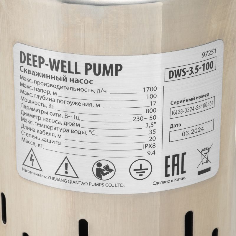 Скважинный насос Denzel DWS-3,5-100, 97251