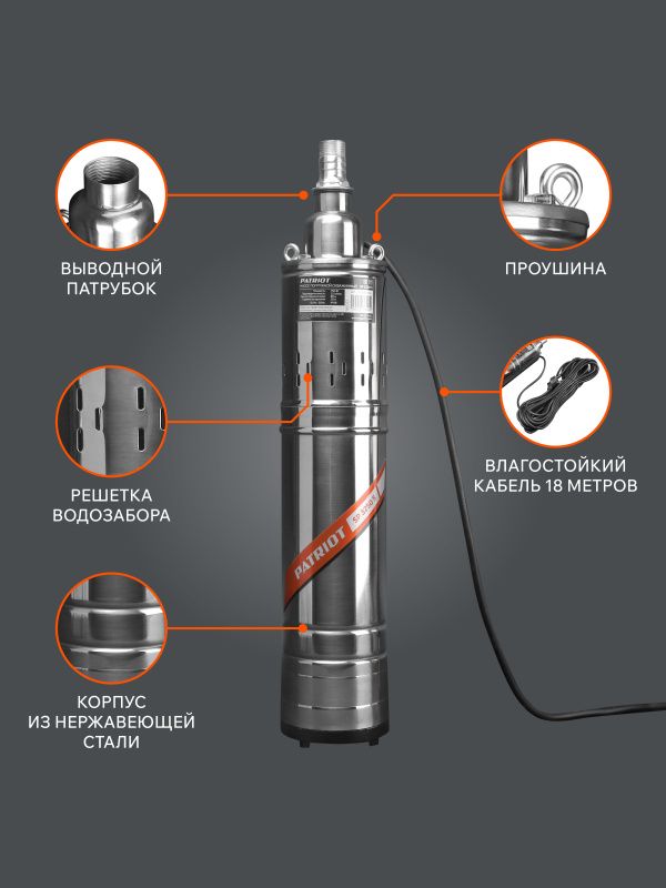 Скважинный насос Patriot SP 3250 S имеет прочный и надежный корпус, выполненный из высококачественных материалов. Он устойчив к воздействию агрессивных сред, что позволяет использовать его даже в сложных условиях. Компактные размеры и легкий вес делают насос удобным в транспортировке и установке.