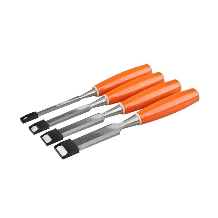 | Особенности | Ударопрочная рукоятка с противоскользящим покрытием., Твердость 50 HRC;, Протектор на острие;, Трехгранная заточка;, Количество в наборе: 4шт;, Ударопрочная рукоятка с противоскользящим действием. Качественная заточка обеспечивает точный рез по дереву. Рабочая часть стамески выполнена из углеродистой стали твердостью 50 HRC. Для защиты от порезов и безопасного хранения на острие установлен протектор. |