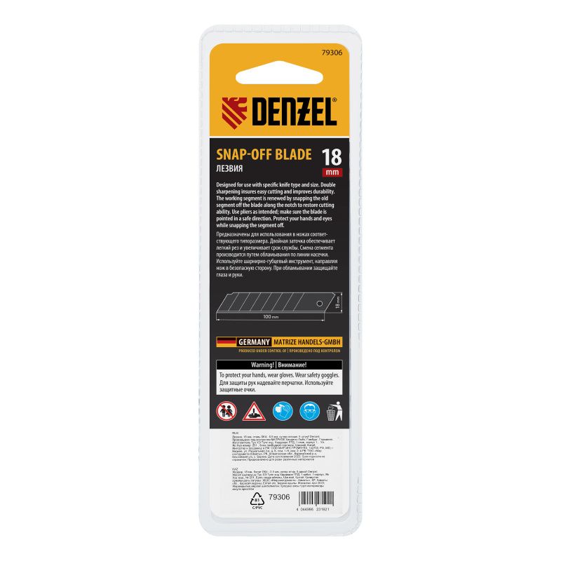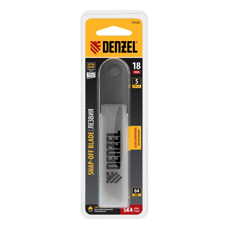 Лезвия, 18 мм, сталь SK4 - 0,5 мм, супер острые, 5 штук Denzel, 79306