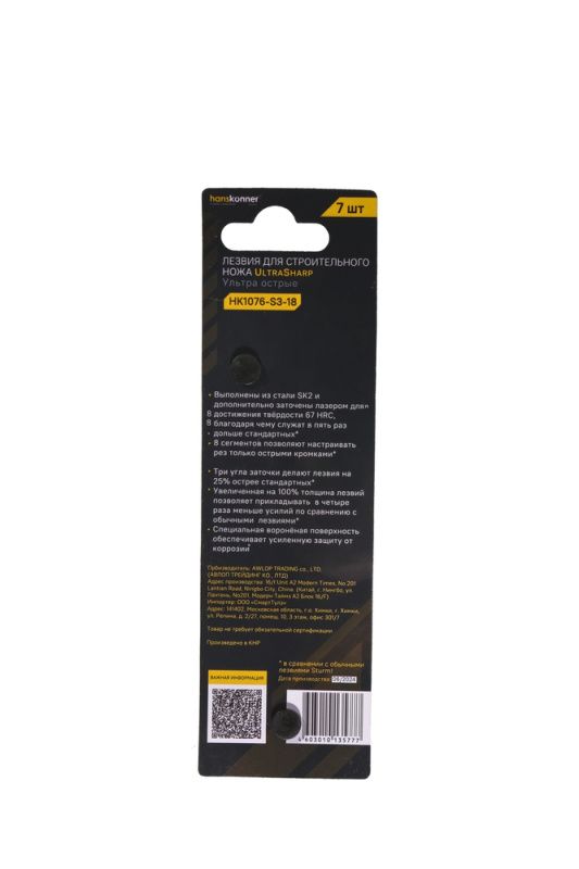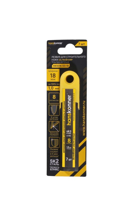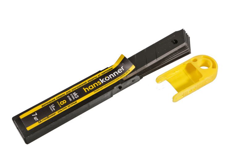Лезвия 18мм, 7шт, оксидированные, SK2 сталь, толщина 1.0мм, Hanskonner, HK1076-S3-18