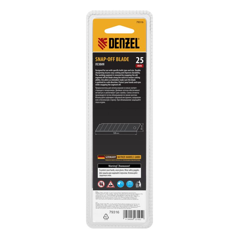 Лезвия, 25 мм, сталь SK5 - 0,7 мм, 5 штук Denzel, 79316