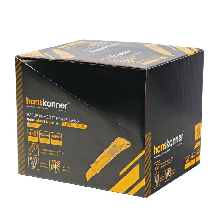 Набор ножей 18мм, пластиковый корпус, лезвие SK2 0.5мм, Hanskonner, HK1076-08-05