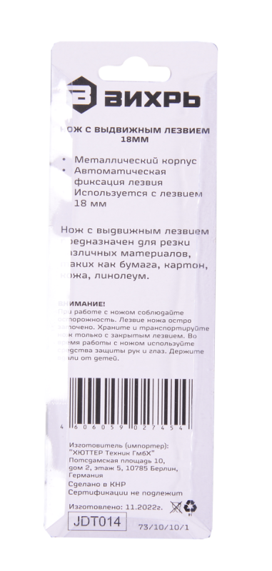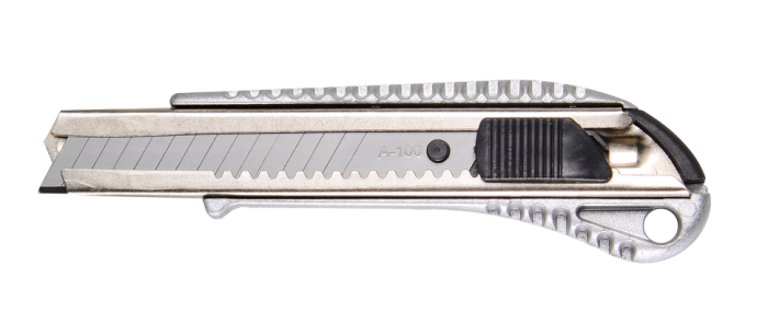 | Модель | Нож с выдвижным лезвием 18 мм, металлический корпус, металлическая направляющая, автоматический фиксатор |