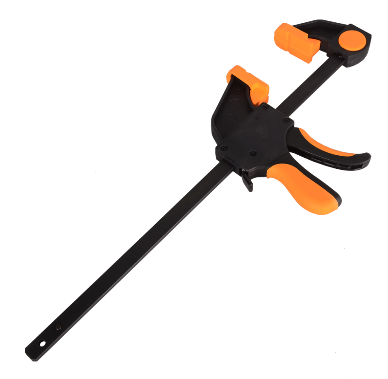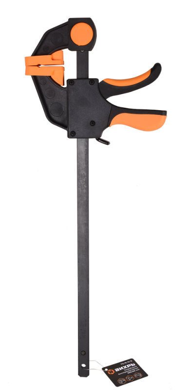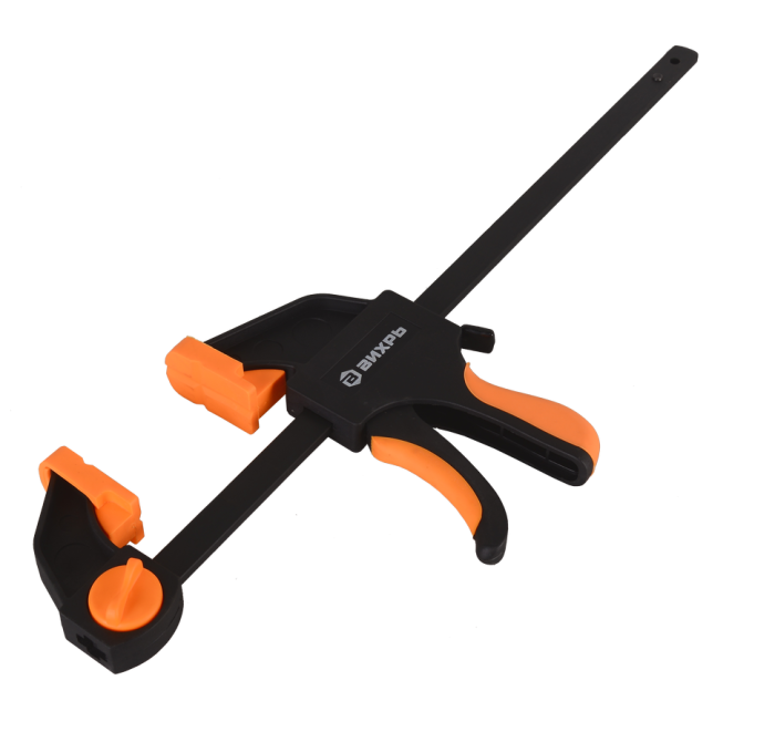 Струбцина быстрозажимная Вихрь 300х60 мм - инструмент пистолетной формы предусматривает наличие рычажного быстрозажимного механизма. Это делает эксплуатацию струбцины легче, позволяя работать с ней одной рукой. Конструкция инструмента позволяет использовать его также в режиме распора.