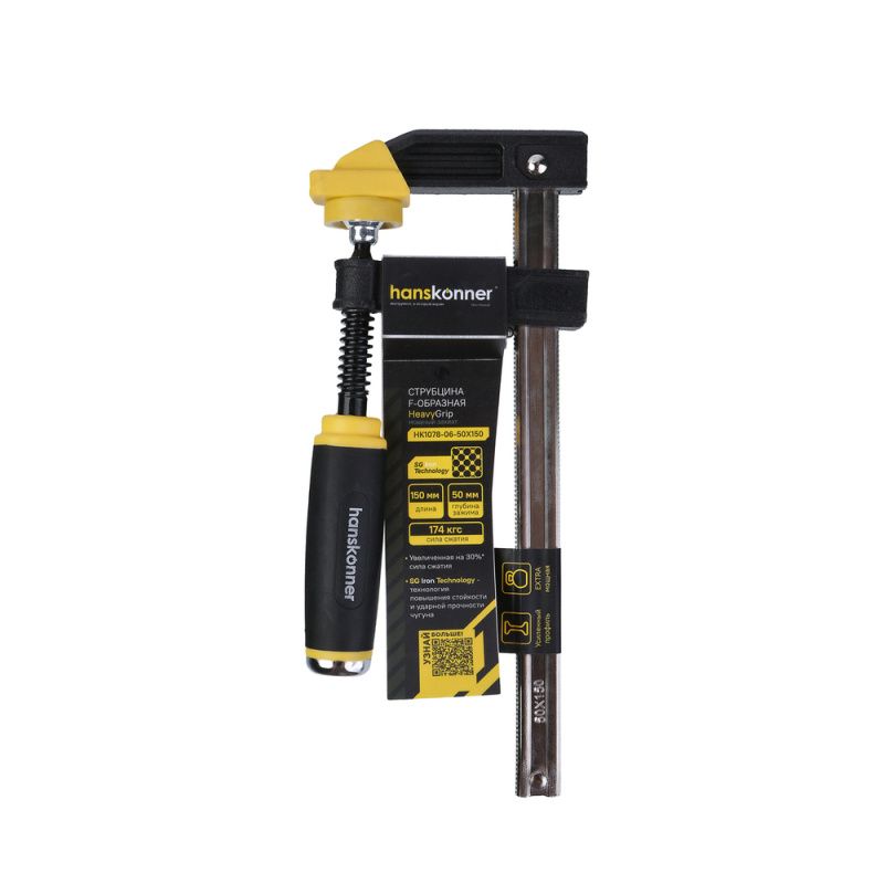 Струбцина F-образная, 50 х 150 x 255 мм, усилие 174кгс, hanskonner, HK1078-06-50X150