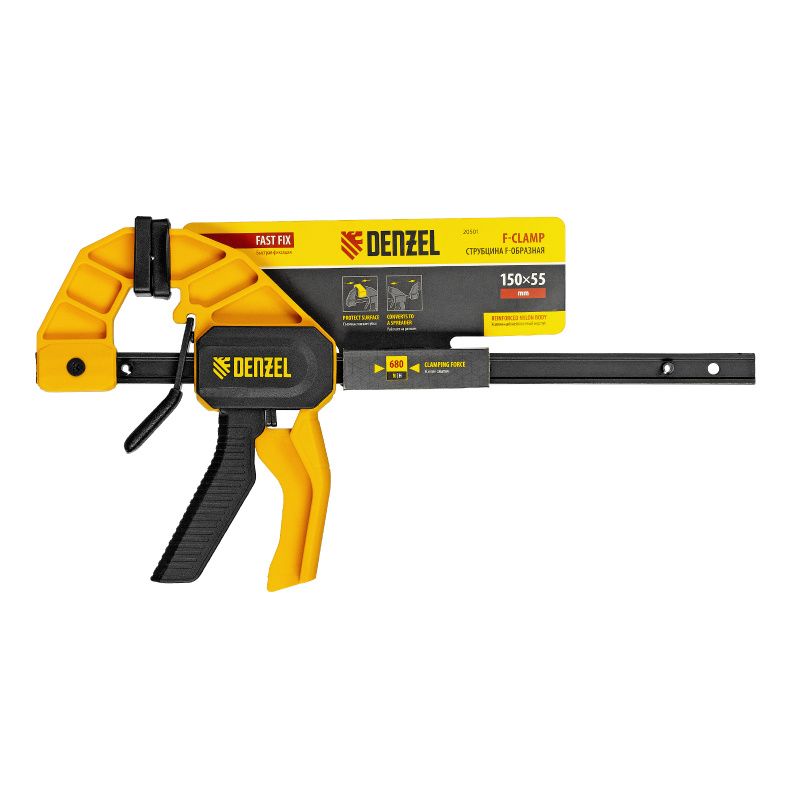 Струбцина F-образная, быстрозажимная, 150 х 55 мм, усиленный нейлоновый корпус Denzel, 20501