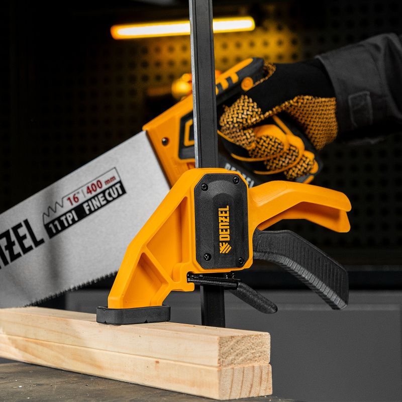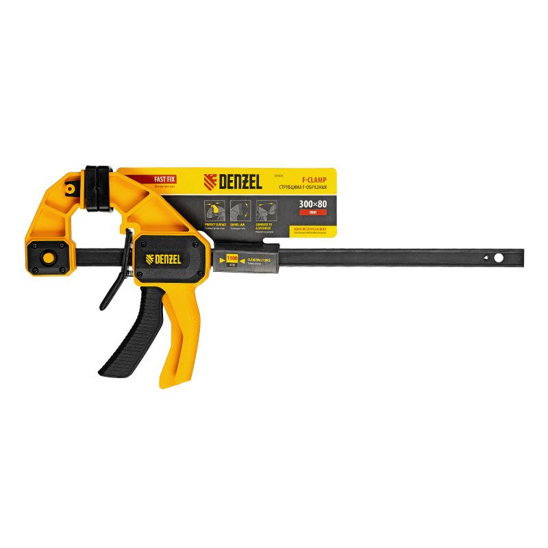 Струбцина F-образная, быстрозажимная, 300 х 80 мм, усиленный нейлоновый корпус Denzel, 20506