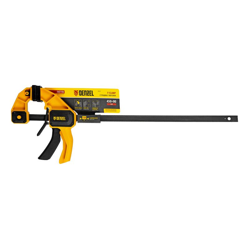 Струбцина F-образная, быстрозажимная, 450 х 80 мм, усиленный нейлоновый корпус Denzel, 20507