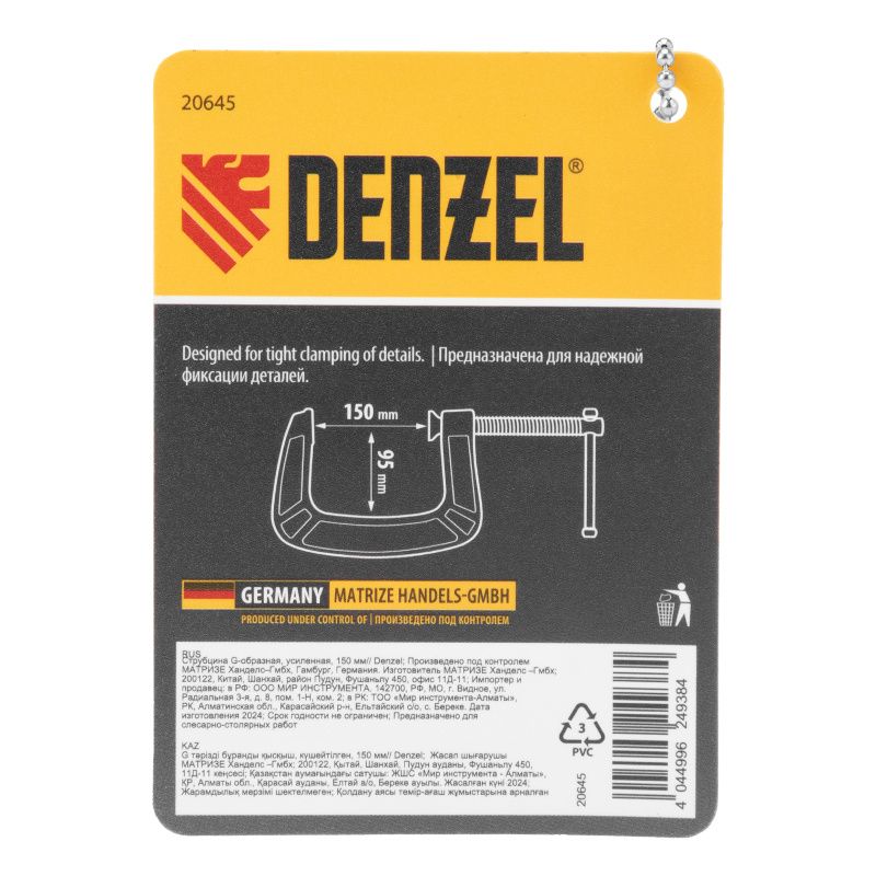 Струбцина G-образная, усиленная, 150 мм Denzel, 20645